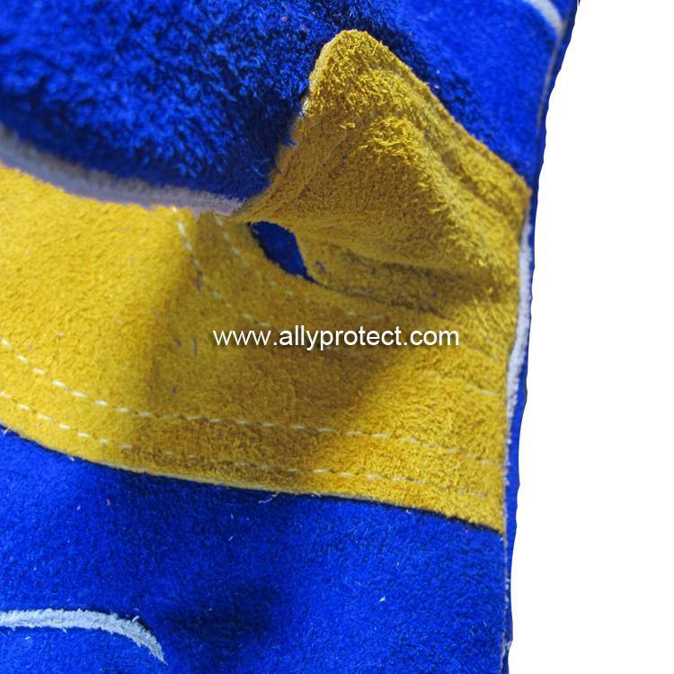 - 產(chǎn)品描述: [ AP ]彩藍色牛二層皮全皮電焊手套,斜拇指、加寬護掌層和護腕設(shè)計,適用于焊接、切割及搬運等用途。