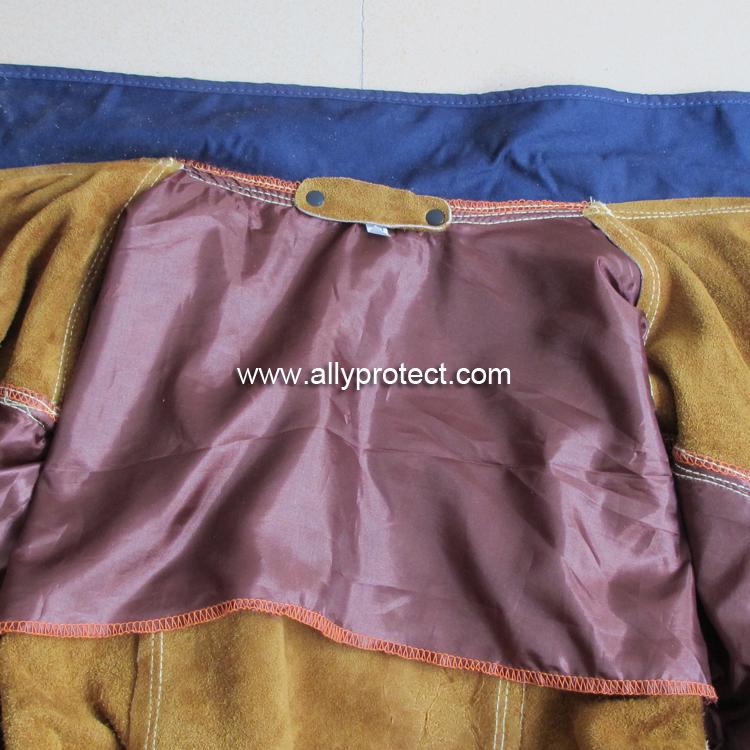 前胸防護(hù)條設(shè)計(jì),防止燒焊飛濺物濺入衣內(nèi),雙層皮設(shè)計(jì)防止撕脫。